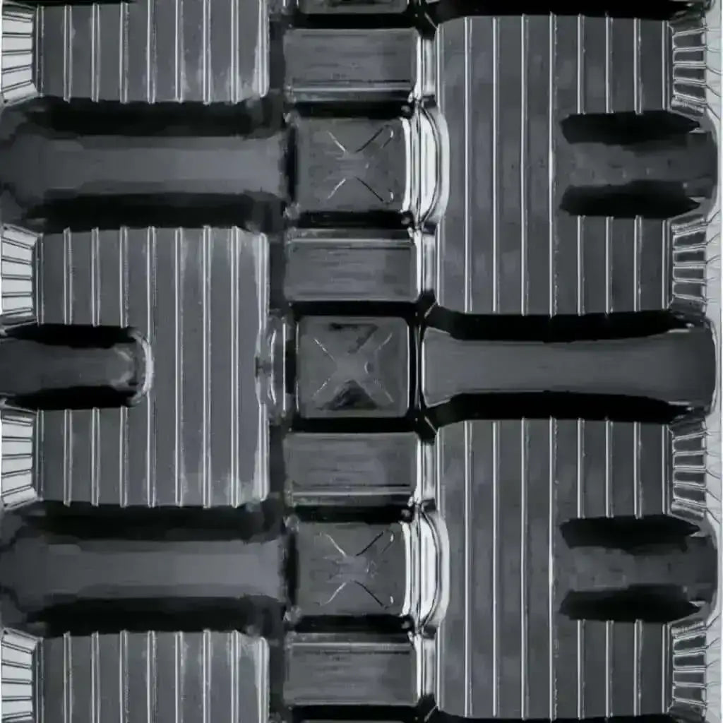 Zig-Zag tread compact track loader rubber track providing all-season traction on turf, mud, and snow