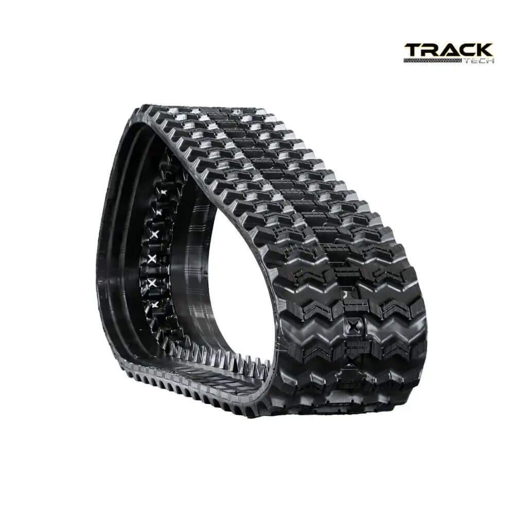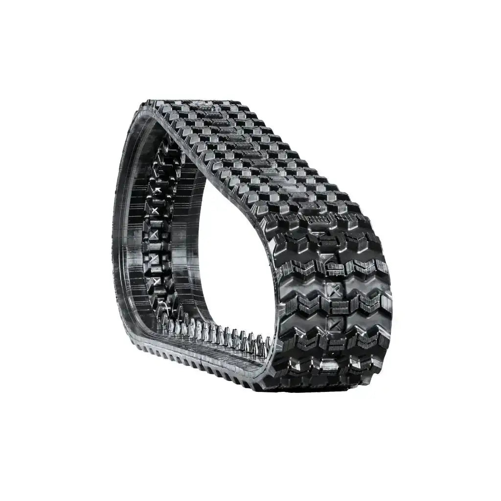 Zig-Zag tread compact track loader rubber track providing all-season traction on turf, mud, and snow