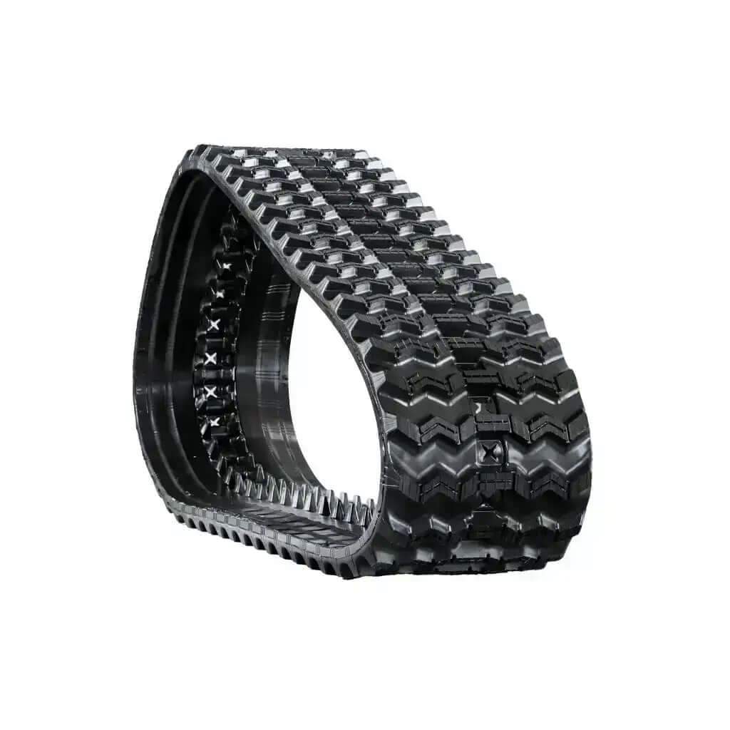 Zig-Zag tread compact track loader rubber track providing all-season traction on turf, mud, and snow