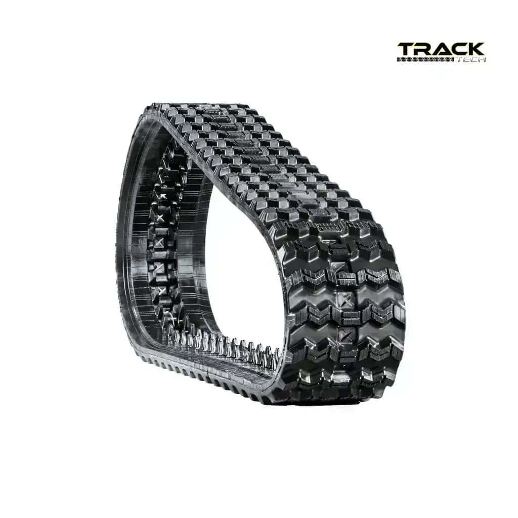 Zig-Zag tread compact track loader rubber track providing all-season traction on turf, mud, and snow