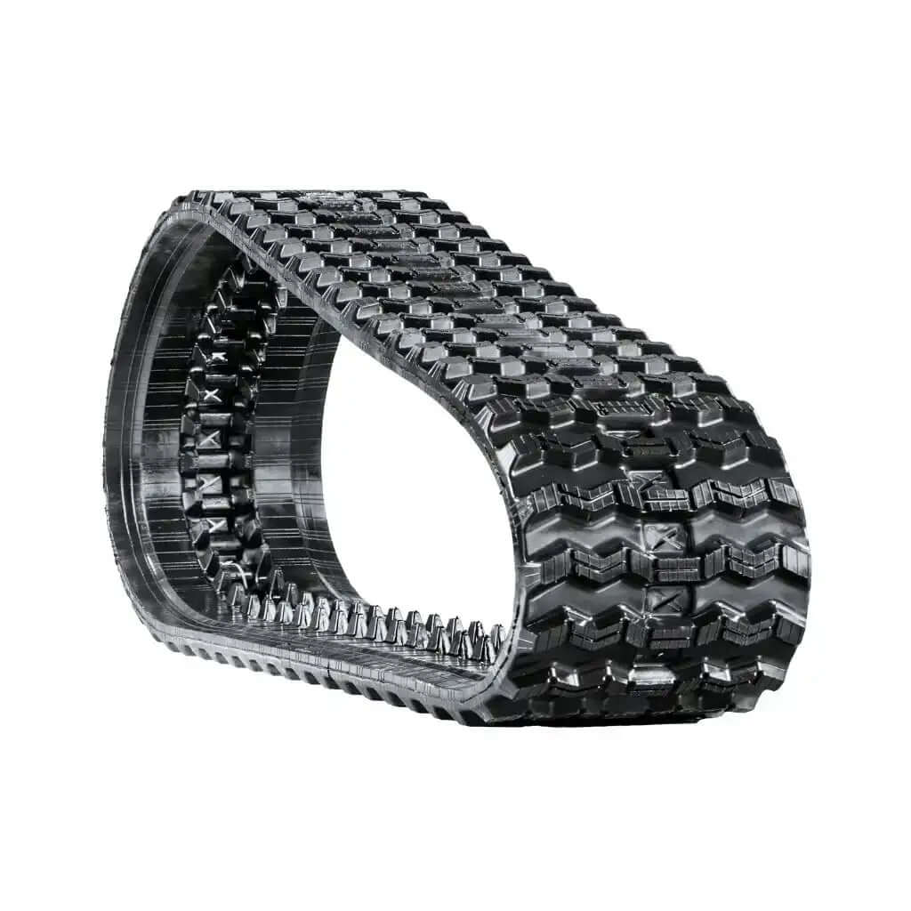 Zig-Zag tread compact track loader rubber track providing all-season traction on turf, mud, and snow
