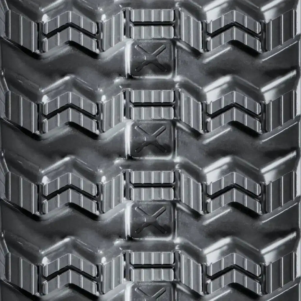 Zig-Zag tread compact track loader rubber track providing all-season traction on turf, mud, and snow