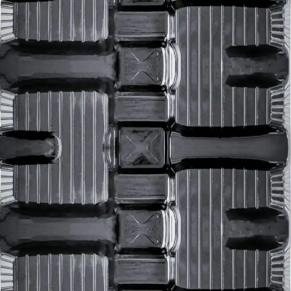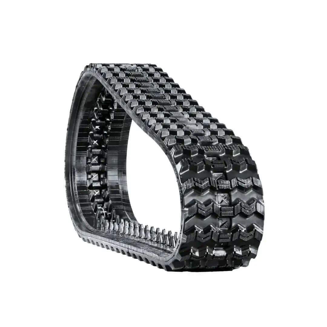 Zig-Zag tread compact track loader rubber track providing all-season traction on turf, mud, and snow