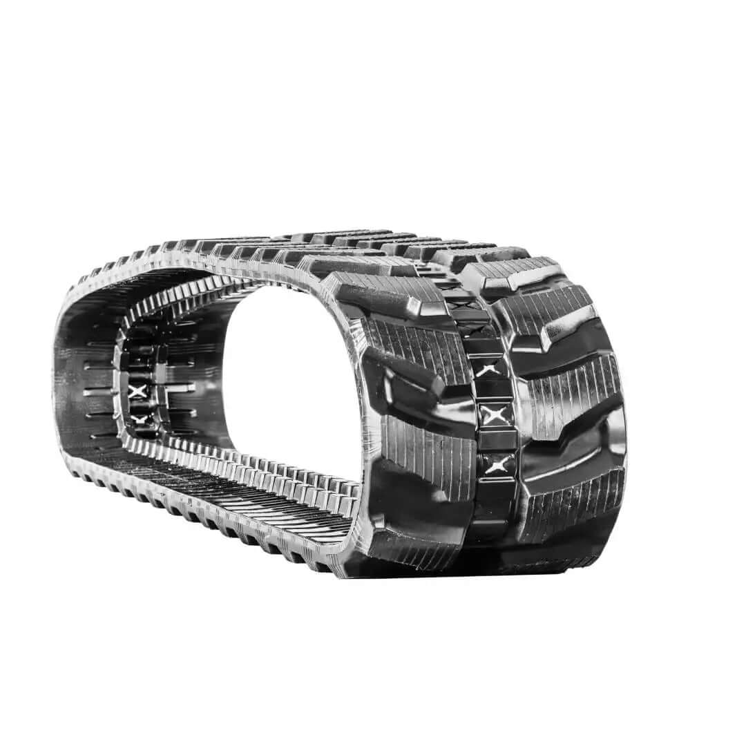 Zig-Zag tread compact track loader rubber track providing all-season traction on turf, mud, and snow