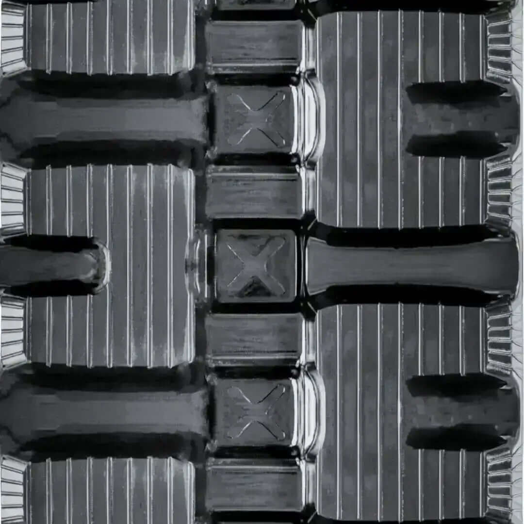 Zig-Zag tread compact track loader rubber track providing all-season traction on turf, mud, and snow